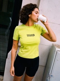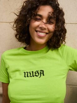 A fresh take on a Nusa fave 💚 The Baby1 SS Tee in a bold neon green & a heavier jersey for that extra structure. Featuring a standout Nusa logo, this tee is made to turn heads (& brighten moods).