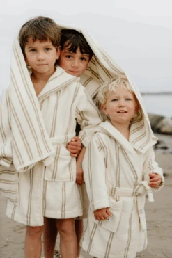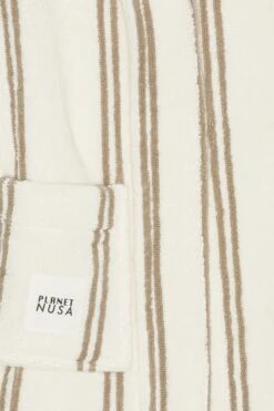 Wrap your tiny adventurers in comfort with Bathrobe1 Junior—soft, striped, & made for cozy moments 🧸 This off-white bathrobe with beige stripes is made in terry cotton for extra snuggle factor! Hooded, with a waist tie & roomy pockets—plus a touch of Nusa with our woven label.