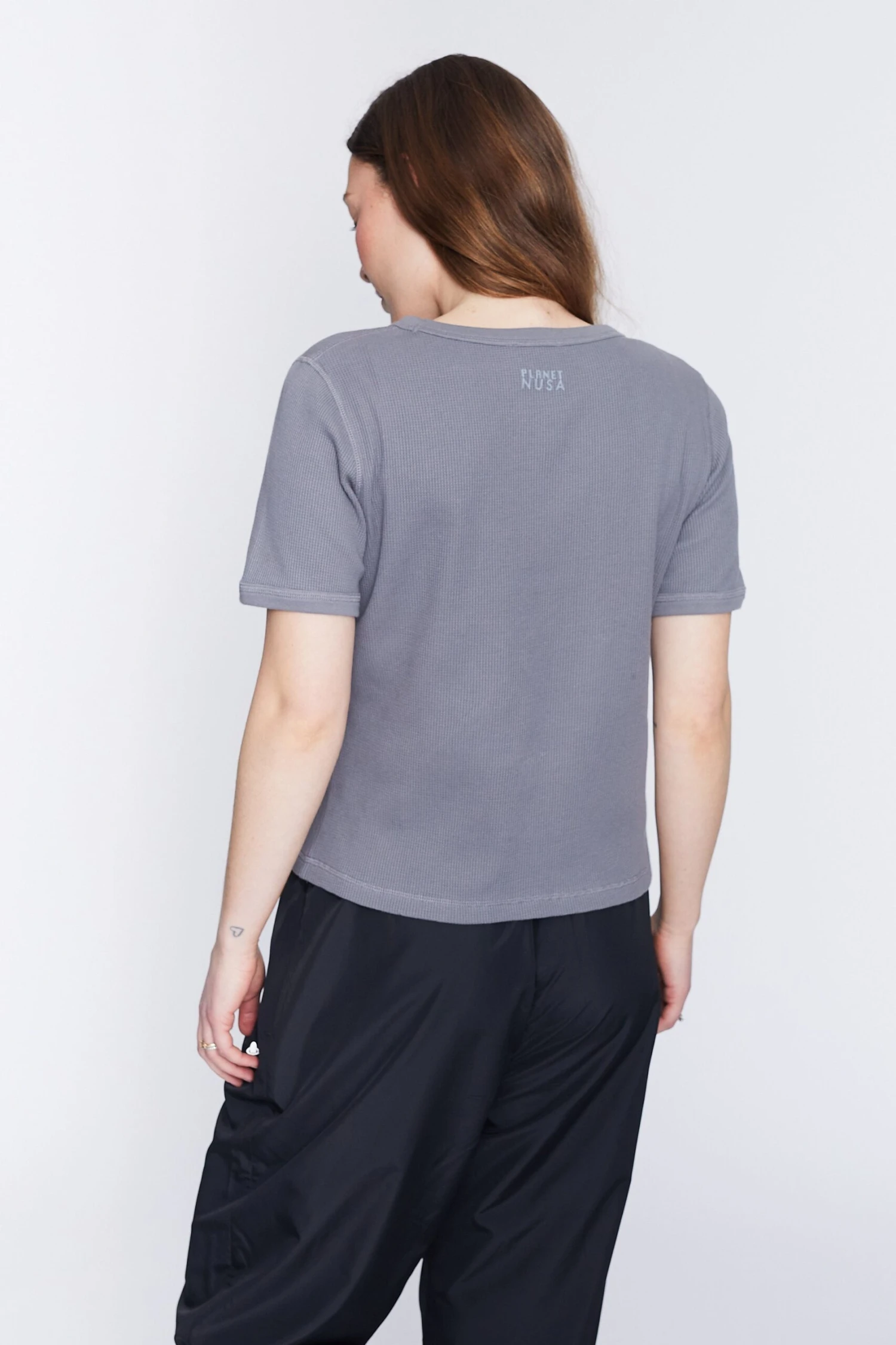 We’ve added a new color to our Field1 range – give a big, warm welcome to your new fave: grey 🩶 Everybody needs a good basic in their wardrobe, this t-shirt is made in a nice waffled jersey 🧇 & has a little grey planet print in front 🪐 It’s so soft that you barely notice that you are wearing it 😉 The classic fit & look will inspire many future outfits, we promise! Gotta love this basic 🩶