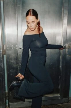 Effortless elegance meets ultimate comfort. This black top features long sleeves & a flattering off-shoulder design, crafted from super-stretch jersey for a sleek, second-skin fit. Finished with a subtle Nusa flag label in the side seam, it’s the perfect piece for dressing up or keeping it casual ✨
