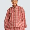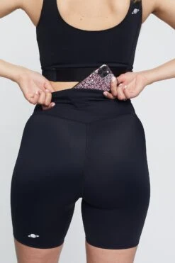 The fit is high waisted and has a phone pocket placed in the back with an outer earphone plug in – so the cord doesn’t end up all scratchy after an hour in the gym. We’ve all been there!