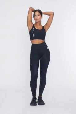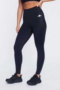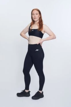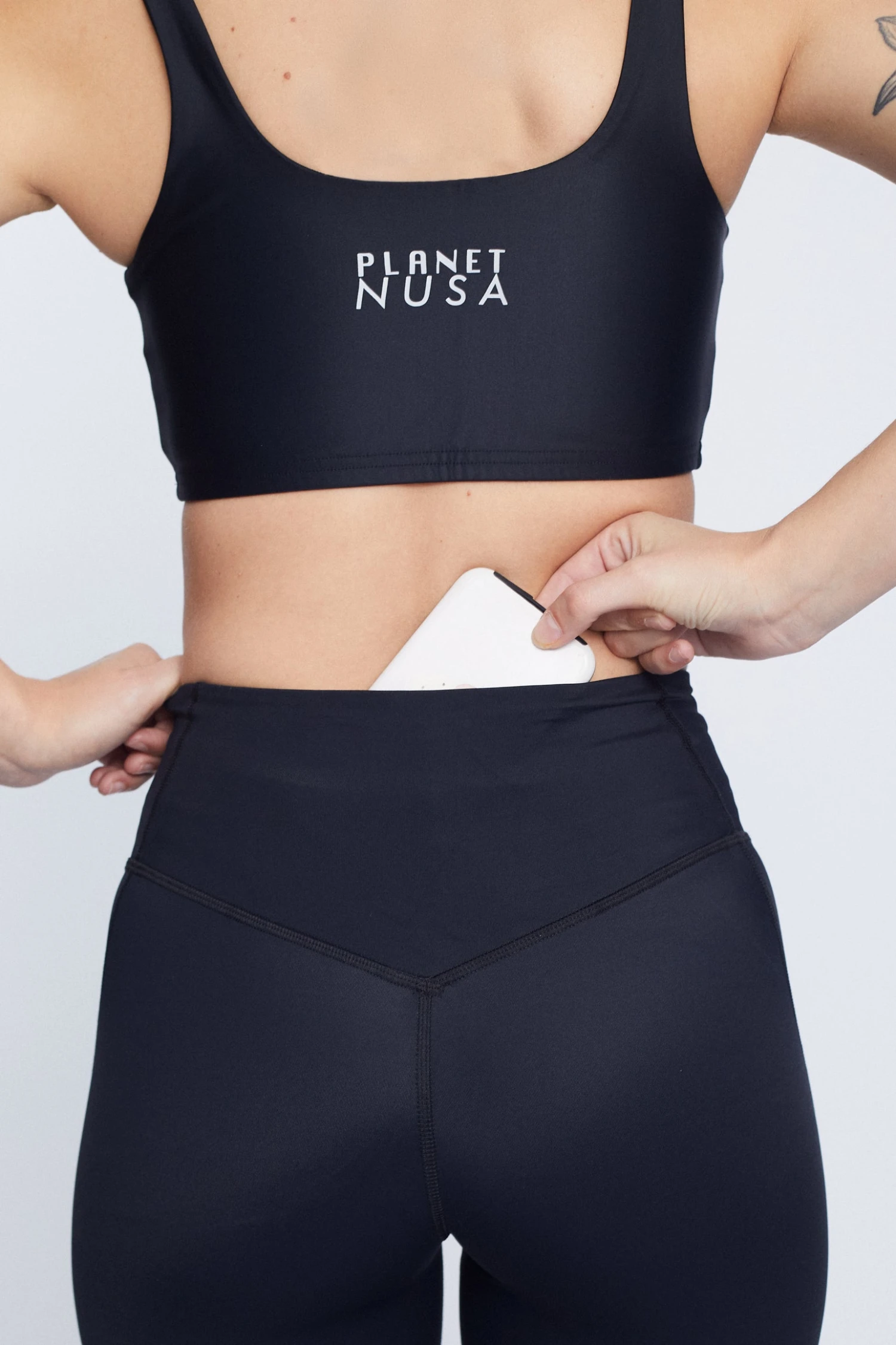 The fit is highwaisted and has extra power hold. Equipped with drawstrings and an iPhone pocket – these both stay up and fit your keys and phone on that afternoon jog. Feels secure and soft at the same time!