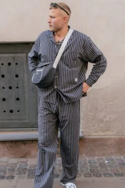 The bag has two pockets & one on the inside to ensure it fits all your essentials. It’s also equipped with an adjustable shoulder strap – so you can get just the fit you want 🙂