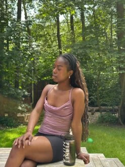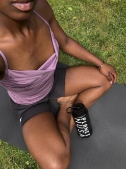 Support underneath, drama on top ✨✨ This dusty purple strap top is made for workouts & wow moments. The inner layer hugs you tight, while the outer layer flows with a soft waterfall drop. It’s sporty, a little flirty, & finished with a reflective planet in the back to keep you glowing on the move 💜